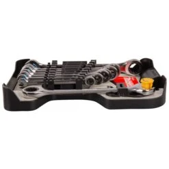 Deze set bestaat uit een ratel 84 tands met 1/4″ opname, T-greep, twee verlengstukken, korte doppen van 4 tot en met 13 mm, lange doppen van 5 tot en met 13 mm, een 1/4″ bitadapter en Torx bits in T8 tot en met T40.